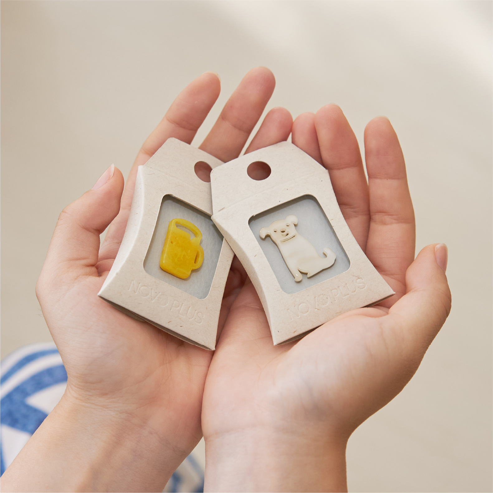 NOVOPLUSは、ボタン製造時に生まれる樹脂のかけらを素材として、アップサイクルしています。